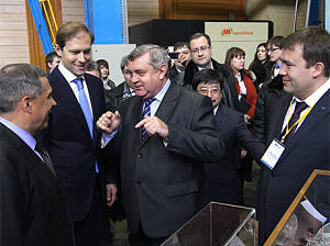 Виталий Волков (ЗПКБ) и Ренат Мистахов (завод им. Горького) рассказывают Денису Мантурову и Рустаму Минниханову об эффективности работы стратегической связки зеленодольских бюро и верфи