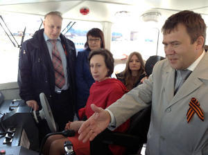 Показывая потенциальным заказчикам ходовую рубку, Мистахов продемонстрировал также систему типа «свой-чужой», основные приборы контроля и управления движением, системы «ГЛОНАСС-GPS». Гости с удовольствием сидели в капитанском кресле, а борт еле заметно качался на волне. Все системы управления двигателями вынесены в рубку, экипаж — 4 человека: капитан, помощник, инженер-механик и матрос, с радушием гостеприимного хозяина рассказывал Мистахов.