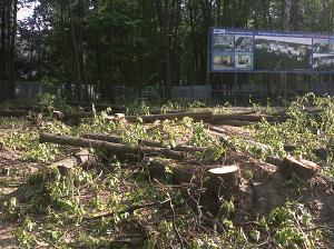 Всю зиму деревья в этой лесопарковой зоне потихоньку спиливались. 15 мая облюбованный мэром участок леса был окончательно огорожен, а 18-20 мая на нем в ураганном темпе опять же «неопознанными рубщиками» была уже дорублена оставшаяся сотня деревьев. Сейчас строительные работы в лесопарковой зоне идут полным ходом.