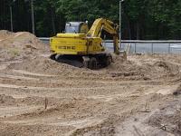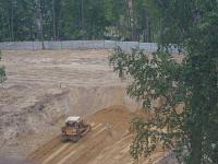 Стройка ведется на вершине склона. Внизу - промзона. Когда стоишь среди леса и смотришь на заводские здания, кажется, что до них рукой подать – стоит только спуститься, и ты у стен. Очевидно, что растущие деревья своими корнями удерживают склон.