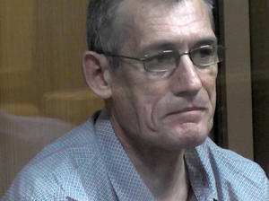 Лидер группировки 56-летний Владимир Мольков скрывал свое лицо, сидя в стеклянной клетке. Его и других подсудимых из зала суда взмахом руки приветствовали родственники. Сам Мольков и еще четыре активных участника ОПФ были привезены в суд из СИЗО, еще двое участников находятся под подпиской о невыезде — сегодня они заняли первый ряд в зале суда.