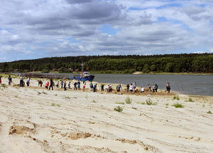 Жители трех поселков - Займище, Октябрьский и Щурячье дружно вышли с лопатами, чтобы раскопать засыпанный берег Волги. Люди рассказывают, что раньше в этом месте был пролив. Сейчас на 200 метров вдоль берега простираются пески. Активисты намерены раскопать протоку, чтобы вода начала протекать поперек «острова» и так можно было избежать застоя вод.