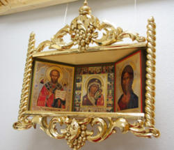 «Евангельские сюжеты» Анатолия Покалева удивительно светлы, тщательно выписаны. Иконы о. Святослава выполнены по всем канонам иконописи, но кроме того, каждая несет особенное настроение – и строгий лик Николая Чудотворца, и Преподобный Серафим Саровский в простом крестьянском одеянии и лаптях, припавший к матушке-земле. Чисты и первозданны пейзажи о.Святослава «Остров-град Свияжск», «Троице-Сергиева лавра».
