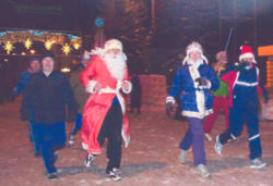 Вооружившись бенгальскими огнями и пиротехникой, спортсмены поспешили на старт. Ракета со свистом взметнулась вверх и, грохнув над головами праздничного люда на площади ДК «Родина», известила о начале бега. Дед Мороз (Игорь Ефимкин) и Снегурочка (Оксана Садко) уверенно повели  бегунов по вечерним улицам. Прогуливающиеся горожане шумно приветствовали непосед, которые также громко отвечали. Мастер спорта по туризму Геннадий Иванов  уже который год удивляет своей пляжной экипировкой (на улице было минус 20!). Сопровождаемый восхищенными возгласами «Во, дает!», он улыбается в бороду и жестом приглашает пробежаться. Водители автомашин, уступая дорогу, гудками  приветствуют кавалькаду.
