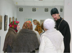 Протоиерей Святослав и прихожане гаринского храма на выставке.