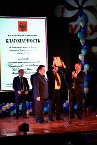 Кстати, сам Юрий Иванович - почетный гражданин Зеленодольского муниципалитета, «Заслуженный строитель Республики Татарстан», кавалер орденов Трудового Красного Знамени, «Дружбы народов» - отметил в эти дни 75-летие. Нынешний руководитель предприятия Радик Хасанов пригласил знаменитого предшественника на сцену, вручил ему высшую награду завода – Почетную грамоту и золотой нагрудный знак POZIS.
