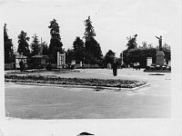 В сквере у ДК Родина - нам том месте, сейчас там площадь с фонтанами, а раньше был загороженный скверик, очень зелёный и красивый. За забором виднеется дом, где раньше был Серговский магазин.