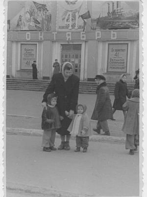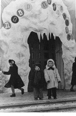 Центральный вход в ДК Родина. Оригинально оформлен для 60-х годов. В самом ДК также было много интересного: например, макет горочки, с которой на саночках скатывалась снегурочка, потом она куда-то исчезала и скатывалась снова. Тогда это казалось чудом…