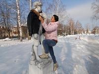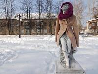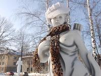 Корреспонденты портала ProKazan.ru морозным днем одели голые статуи на улице Мира