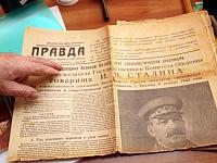 А вот документальные свидетельства военных лет: карты, газеты, агитационные листовки. Нас особенно заинтересовала немецкая агитка, распространявшаяся среди советских солдат и призывавшая переходить на сторону вермахта. На одной стороне надписи на русском и немецком языках, на другой - на татарском на латинице.