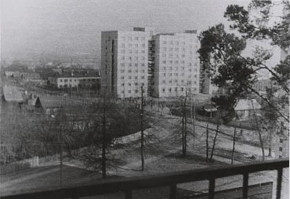Вид с балкона (ул.Фрунзе, 24) - центральная из трех девятиэтажек, 1978 год