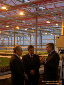 В программе визита Президента РТ М.Ш.Шаймиева в Зеленодольский муниципальный район было посещение ООО «Тепличный комбинат «Майский» в с. Осиново. Президент посетил современные теплицы с круглогодичным возделыванием огурцов на подвесных желобах и производством клубники на светокультуре. Высотные теплицы здесь начали строить в мае прошлого года и закончили в ноябре. Высота новых теплиц – 5,5м (стандартные – 3,2м). В их возведении заимствован голландский опыт. Сметная стоимость проекта 240 млн.руб. Под современные сооружения в агрокомбинате отвели 36 200 кв.м. С вводом их в действие коренным образом меняется технология выращивания овощей в закрытом грунте. Новые сооружения экономят более 40% энергоресурсов, поскольку они возведены из герметичных конструкций. Улучшенный воздухообмен позволяет растениям развиваться ускоренными темпами. В конечном итоге, урожайность огурцов и томатов, возрастет более чем вдвое и достигнет 3 тыс.тонн, всего по агрокомбинату до 23 тыс.тонн. На другом участке гости познакомились с линией по производству и фасовке земляники. Она была закуплена в Голландии. Посадки клубники занимают 700 кв.м, однако со временем площадь под эту культуру планируется увеличить. Кроме того, кипит работа и в теплицах, где выращивают зеленые культуры: салат, укроп и петрушку. Недавно площадь зеленных культур была увеличена с 1 тыс. до 3 тыс. кв. метров. В результате, ежегодно теперь будет производиться до 2 млн. штук салата, укропа и петрушки (раньше было 500 тыс. штук). Сегодня на предприятии работает около 1400 человек. Средняя заработная плата более 13 тысяч рублей. В числе потребителей продукции «Майского» - Москва, С.-Петербург, Ижевск, Самара и другие крупные города России. Директор комбината - Ильшат Газимович Ганиев, - ученый-агроном, кандидат сельскохозяйственных наук, Заслуженный работник сельского хозяйства Российской Федерации и Республики Татарстан, Лауреат Государственной премии в области науки и техники Республики Татарстан после экскурсии ответил на вопросы журналистов. Он сказал, что овощи которые поступают в Россию из Ирана или Турции приходят к покупателю уже не свежие. «Огурец сохраняет свои полезные свойства в течение трех дней, - сказал Ильшат Ганиев.- В это время его надо есть, и он приносит пользу, особенно детскому организму. Наши овощи экологически чистые без ядохимикатов». М.Шаймиев, говоря о продукции комбината назвал ее «продукцией с утренней росой». И действительно, отметил И. Ганиев, овощи, собранные утром из теплиц, уже днем оказываются на прилавках супермаркетов.