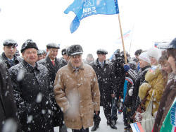 Аккурат к моменту прибытия президентского кортежа зарядил сильнейший снегопад. Будто не только Президент, но и сама Зима, одобряя это событие, принимала участие в открытии сооружения...