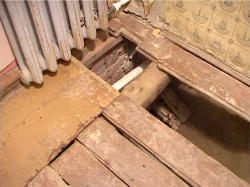 В редакцию обратились жильцы одной из квартир, расположенной на первом этаже. Душно, влажно, под ногами — доски, в щелях видны вода, песок и коммуникации… А началось все с того, что в декабре 2007 года в доме начался капитальный ремонт.