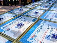 Далее состоялось награждение 20 лучших работников предприятия дипломами, премиями и золотыми нагрудными знаками POZIS. Одним из двадцатки стал ветеран войны, обладатель медали «За отвагу» и ордена Красной Звезды - Петр Ванчушкин. С 1956 по 1984 годы он проработал в военизированной охране завода.