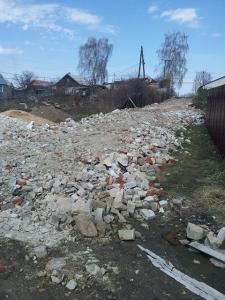 строительный мусор в пожарном проезде на улице Советская в поселке Васильево