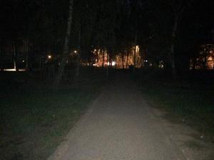 Отсутствует уличное освещение на аллеях во дворе дома по ул.К.Маркса 51 по направлению к часовне. Столбы освещения установлены, провода оборваны, кромешная темнота.