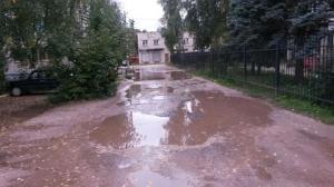 Разбитая дорога, ведущая к входу в ООО «УК «Жилкомплекс»