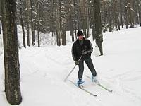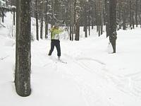 Теперь проходим "тонкий лед". Расстегнули крепления, палки в одной руке, рюкзак на одно плечо...