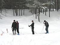 Пока мальчишки связывают лыжи,