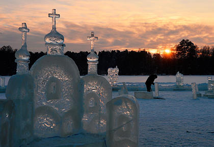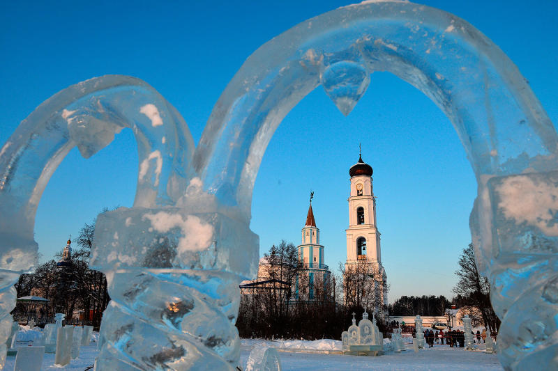 Раифская сказка изо льда: Скульпторы и резчики создали хрустальный городок