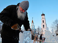 В окрестностях Раифского Богородицкого монастыря мастера возводят городок ледяных скульптур.