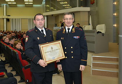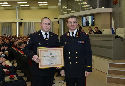Генерал-лейтенант полиции Артем Хохорин вручил ведомственные награды полицейским, которые в ночь на 18 января спасли 9-летнего мальчика, заблудившегося в сильную метель.