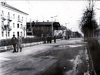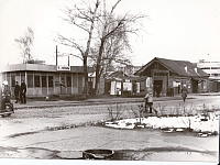 На улице Ленина - усиленный снос деревянных двухэтажек. На фото есть одна загадка: прямо посреди улицы стоит толстенное дерево! Деревья, безусловно, растут по бокам дороги (одно из них живо до сих пор), и это всего лишь причуды перспективы.