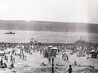 Лето 1977года. Празднование Дня ВМФ с театрализованным представлением: сначала танец русалок в воде (слева видны их головы), затем прибытие к берегу Нептуна на кораблике с флажками, русалки встречают своего Владыку, затем высадка из шлюпок на берег морского десанта с оглушительной стрельбой... Как мы выяснили общими усилиями, такие праздники на Дни ВМФ устраивались силами моряков, проходивших службу в нашем городе. Репетиции этого действа проходили в ДК им. Горького. А пушка, помогавшая Нептуну отстреливаться, зимой стояла около ДК "Родина" и служила... ледяной горкой!