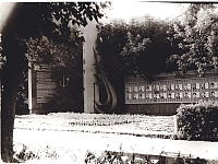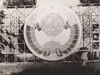 Постоянный щит, прикрывавший неприглядный дом, обновляли два раза в год - к весенней и осенней демонстрациям. Причём плакаты, посвящённые Октябрю, радовали жителей вплоть до конца апреля, когда они заменялись первомайскими картинами. Поэтому на фотографиях начала апреля мы видим на щите октябрьскую тематику. После моей фотосъёмки к 1 мая щит обновили в последний раз, затем были снесены и щит, и дом.