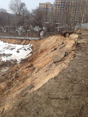 30 марта "Хотелось бы поднять тему огромного оврага небрежно прикрытого забором. Место прилегает к нашей городской святыни Вечному огню. Разрыли овраг глубиной 7-8 этажей. Овраг не сильно, но начинает обрушаться. Сейчас он держится на корнях деревьев которые срублены. Помниться изначально там планировался гаражный комплекс, потом все встало... Затем новая эпопея со стройкой уже жилого дома и снова ступор. Ну как так бездарно можно было запороть лес... Да-да там был лесок стояло несколько гаражей, вырыть карьер в 7-8 этажей и стыдливо прикрыть это забором. Застройщик похоже потерял интерес к стройке. Какие у кого мысли? Где наш супер мэр Тыгин?? Засыпать этот овраг нереально. Просьба обратить на это внимание!!!! В центре города такая опасность. Мне как человеку который любит свой родной город скорбно видеть такой удручающий вид."