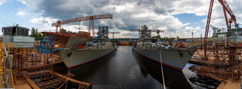 Два сторожевых корабля "Гепард" в доке завода.