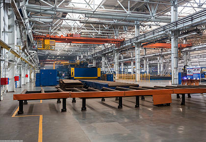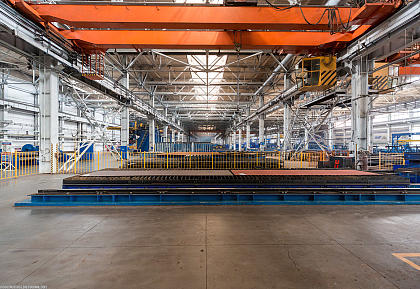 Цех металлоподготовки. Здесь происходит очистка металлопроката от окалины и ржавчины с последующим грунтованием.