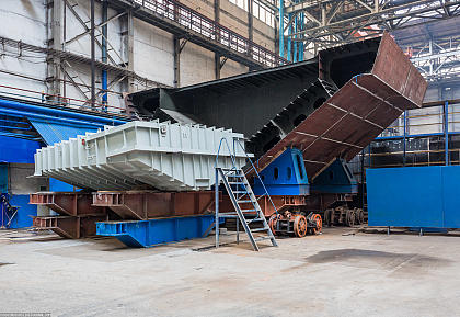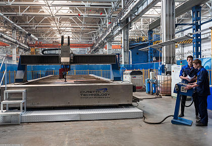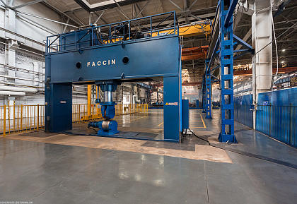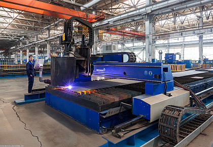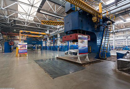 Вместо старого работает импортный пресс для трехмерной гибки листового металла. Этим сгибают детали обшивки корпуса судна толщиной до 30 мм. Усилие на цилиндре — 500 тонн.