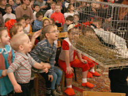 — К нам привезли небольших зверей в клеточках, чтобы дети после праздничной торжественной программы вместе со своими мамами, папами могли полюбоваться на них, — говорит Эльвира Низамова, заведующая отделением социальной адаптации центра «Доверие». — Потому что у них такой возможности нет — съездить в Казань, в зооботсад, и поэтому для них это будет очень приятно, познавательно и интересно.