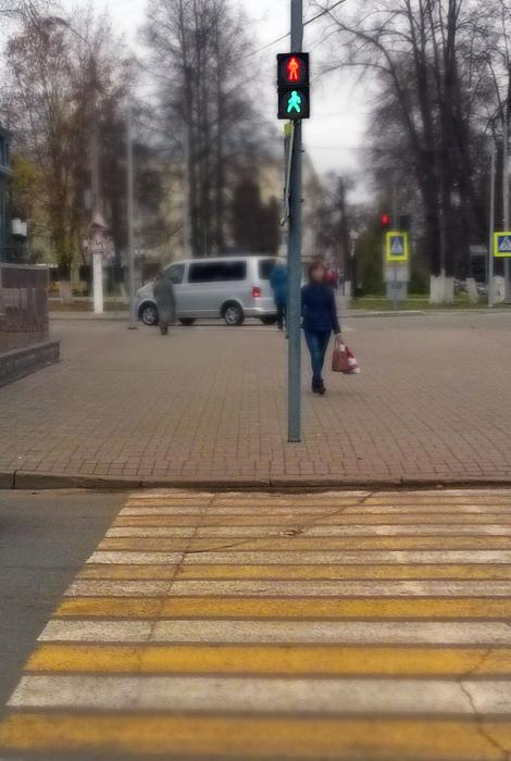 Светофор у парка Победы предлагает пешеходам самим делать выбор — переходить дорогу или ждать...