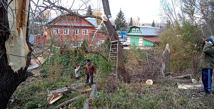 "Вот в таких опасных условиях пришлось валить сгнившие деревья-бесплатно!""У нас народ очень хороший - отзывается на полезные дела иногда и бесплатно!"