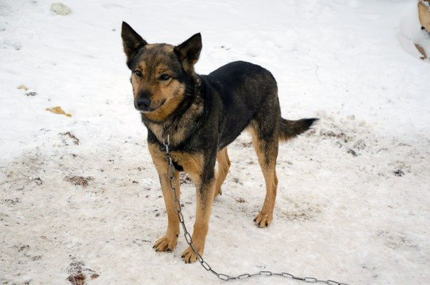 Один черный пес, завидев издалека людей, начинает радостно подпрыгивать на всех четырех лапах. Так он прыгал, пока его не погладили и не почесали за ушком. Можно представить, как ему не хватает человеческого тепла, здесь на привязи, в приюте, где таких еще две сотни.