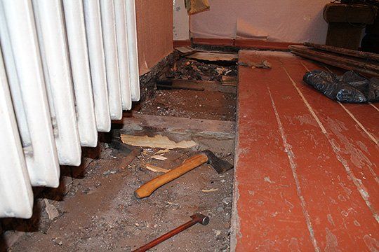 Фрагмент проведения экспертизы в доме на ул. Декабристов, 3 показывающее хорошую сохранность балок под половицами. Фото из личного архива жильцов