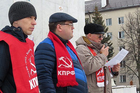 Митинг пунктуально своим выступлением открыл Валентин Кострин — первый секретарь зеленодольского отделения КПРФ. Начав свою речь с того, что "только ленивый обыватель не критикует премьера Дмитрия Медведева, вопреки либеральным обещаниям которого капиталистического процветания не наступило", коммунисты вошли в резонанс с Алексея Навального. Далее они провозгласили резолюцию, в которой потребовали заморозить на три года рост тарифов на услуги ЖКХ, а заодно ограничить плату за услуги ЖКХ в пределах 10% от общего дохода семьи, если она имеет доход ниже прожиточного минимума на одного члена семьи. Также они призвали установить минимальный размер оплаты труда на уровне прожиточного минимума и принять закон, освобождающий уплаты за капремонт пожилых людей старше 65 лет.