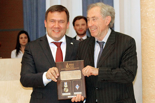 После нескончаемых поздравлений заводчан, в том числе концертными номерами, председатель республиканского совета общества рационализаторов и изобретателей Ленар Гайсин наградил зеленодольский завод кубком победителя республиканского смотра на лучшую постановку изобретательской работы среди машиностроительных предприятий РТ, заметив, что такую награду предприятие получает уже в четвертый раз.