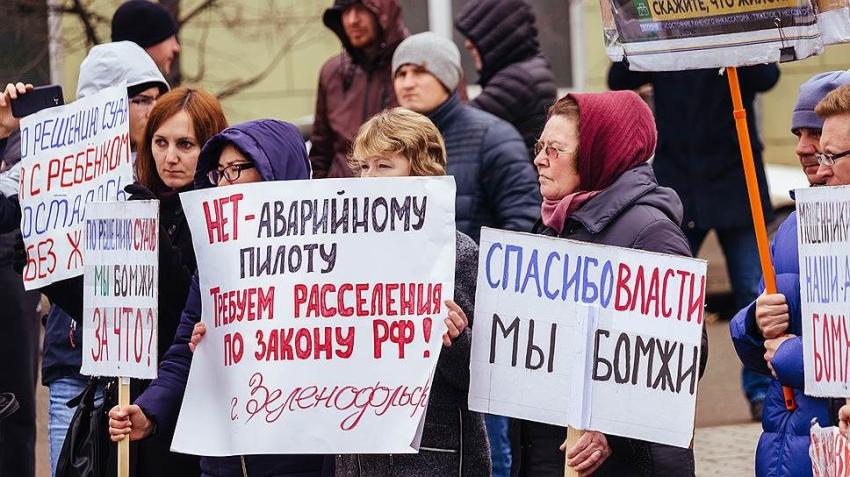 Сюда же в Казань, на протестную акцию приехали зеленодольские аварийщики, которых власти выселяют из домов, признанных аварийными. Республика компенсировала им по 11 тыс. за кв.м, однако компенсаций не хватает на приобретение нового жилья. В итоге, как заявляют активисты, пенсионеры и матери с детьми вынуждены отдавать все свои доходы на оплату ипотеки. "Требуем расселения по закону РФ", "Спасибо власти, мы бомжи" - такие плакаты можно было видеть на митинге.