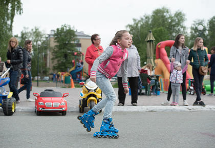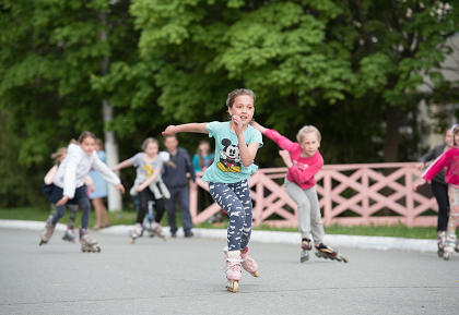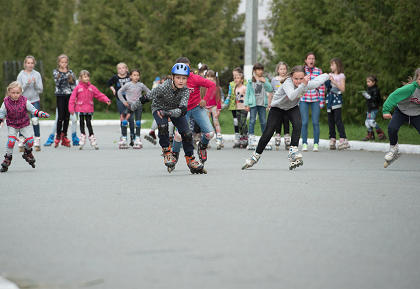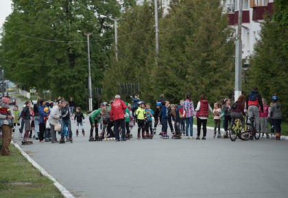 У ДК "Родина" проходили детские соревнования на роликовых коньках.