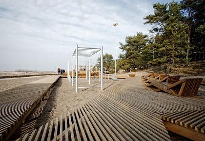 Чтобы пляж не пустовал весной и осенью, архитекторы предложили разместить на нем спортивные площадки. Здесь построют сразу три площадки для пляжного волейбола, а также установят спортивный инвентарь для занятий воркаутом.