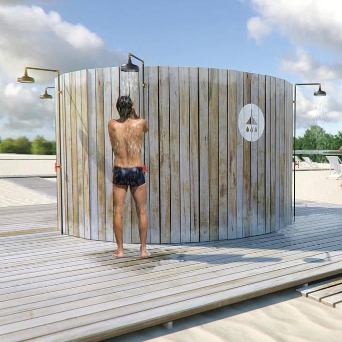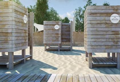 Вдоль центральной дорожки поставят душевые и раздевалки. А чтобы отдыхающим было где скрыться от палащего солнца, здесь будут высажены деревья.