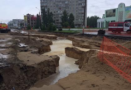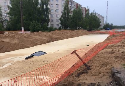 Экскаватор на ночь был оставлен в выкопанной траншее на улице Комарова, которая в ночь с четверга на пятницу из-за дождя наполнилась водой. В соцсетях появились фотографии и видео инцидента.