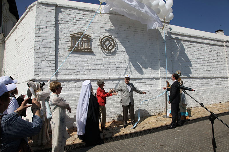 Установка знаков ЮНЕСКО на стенах Успенского собора в присутствии гендиректора ЮНЕСКО Ирины Боковой