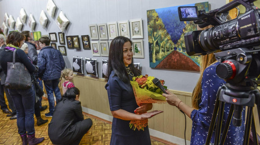 Дизайнер Лилия Мирзиева на открытии выставки своих работ