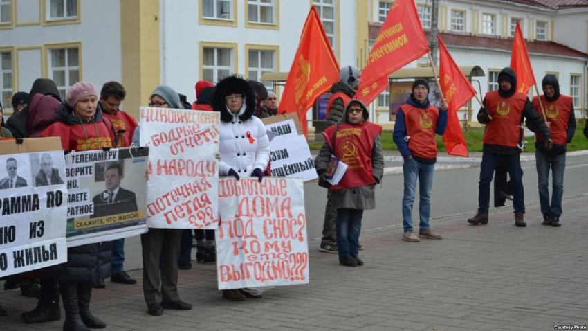Татарстанские аварийщики в воскресенье вышли на митинг в Зеленодольске против признания их домов не подлежащими для проживания, а также против бездействия прокуратуры Татарстана и беззакония местных властей.