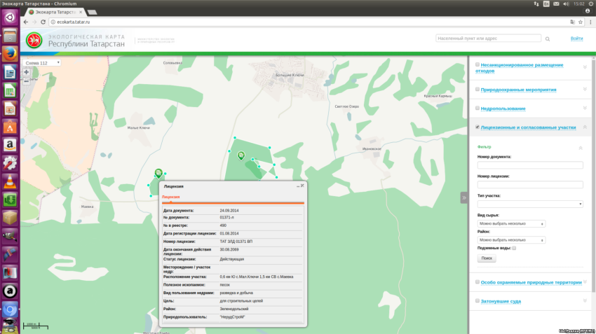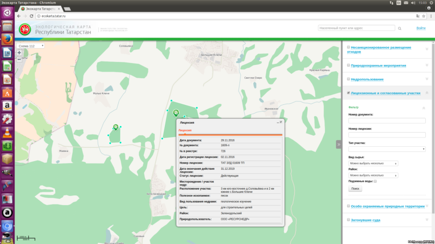 Судя по данным "Экологической карты Татарстана" и публичной кадастровой карты Росреестра конфигурация этого участка недр соответствует четырем земельным участкам — с кадастровыми номерами 16:20:050903:72, 16:20:000000:3437, 16:20:050903:70, 16:20:000000:3439 общей площадью 211,2 га.